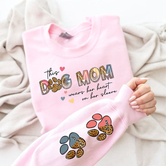 Tragen Sie ein Herz auf dem Ärmel, personalisiertes Sweatshirt mit Hundemama-Namen, Geschenk für Tierliebhaber