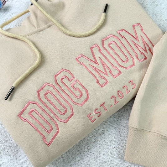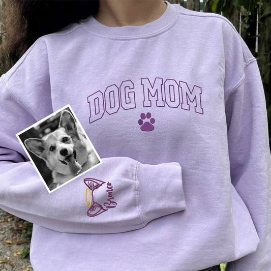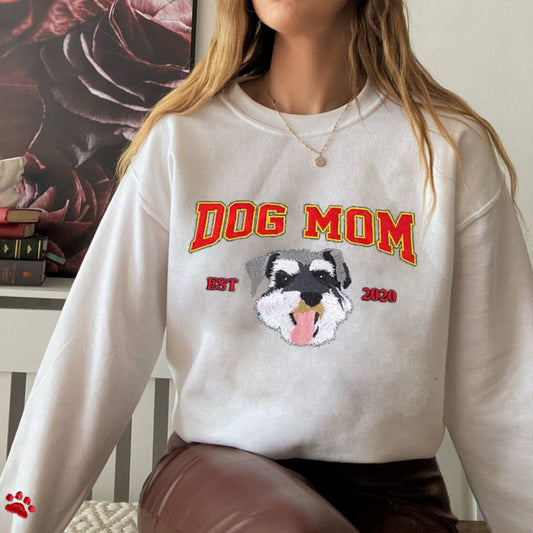 Personalisiertes besticktes Dog Mom EST Sweatshirt mit Haustiergesicht Geschenk für Hundeliebhaber