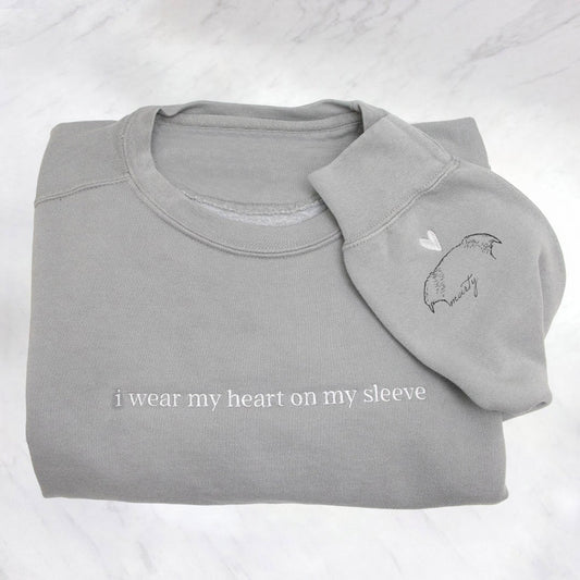 Personalisiertes Sweatshirt mit bestickten Haustierohren, „I Wear My Heart on My Sleeve“, Geschenke für Hundeliebhaber