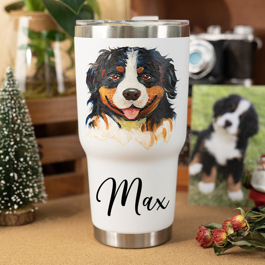 Personalisierter Trinkbecher mit Haustierporträt und Namen – Individuelles Geschenk für Hunde- und Katzenliebhaber, Weihnachtsandenken für Tierfreunde