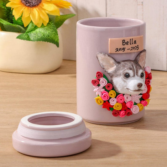 Personalisierte Haustierportrait-Urne für Asche, Keramik-Einäscherungsurne mit Deckel, Erinnerungsgeschenk für Katzen- und Hundeliebhaber, Haustierverlust-Geschenk