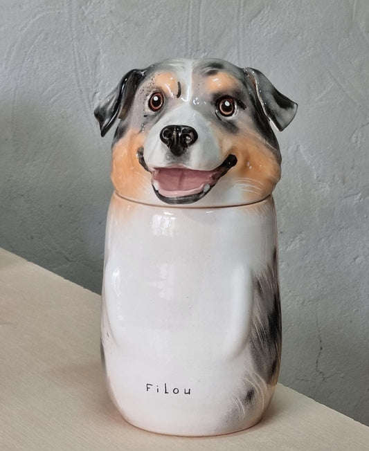 Personalisierte Hundeurne für Asche – Individuelles handmodelliertes Portrait & eingravierter Name als Erinnerungsgeschenk | Auf Bestellung gefertigtes Keramik-Andenken