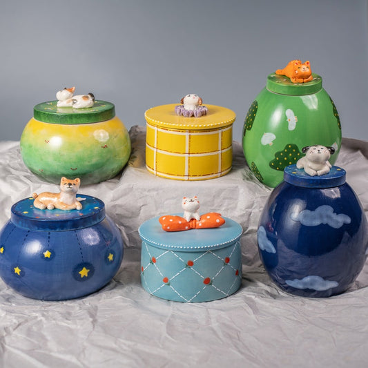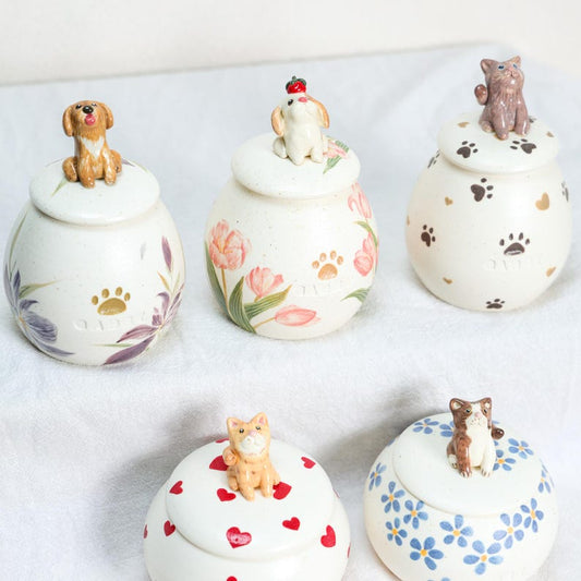 Individuelle Haustier-Gedenkurne – Handgefertigte Keramikurne für Hunde/Katzen für die Asche mit Haustierfigur und Namen
