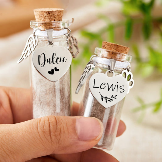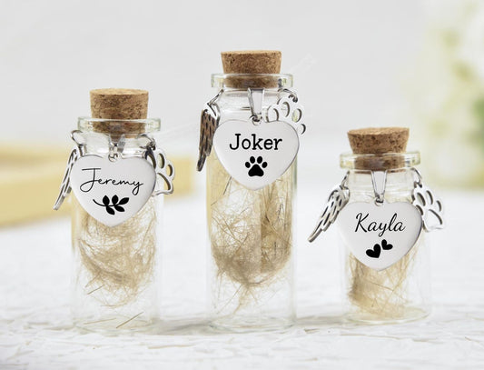 Individuelles Andenkenglas aus Tierfell mit Namen – Personalisiertes Tierhaar-Erinnerungsgeschenk für den Verlust eines Hundes oder einer Katze