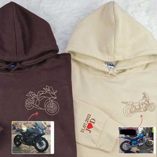 Individuell besticktes Auto-Fahrrad-Umriss-Sweatshirt von Ihrem Foto, passender Hoodie, Valentinstagsgeschenk für Paare