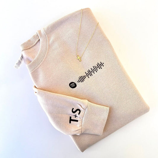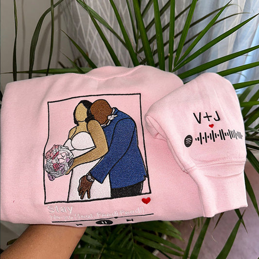 Individuell bestickter Portrait-Musikplayer mit Spotify-Code auf dem Ärmel, Paar-Sweatshirt, Valentinstagsgeschenk