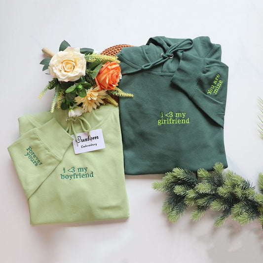 Benutzerdefinierter Hoodie für Paare mit Stickerei „I Love My Girlfriend Boyfriend“, passender Hoodie, Geschenkideen zum Jahrestag, Valentinstagsgeschenke für Paare