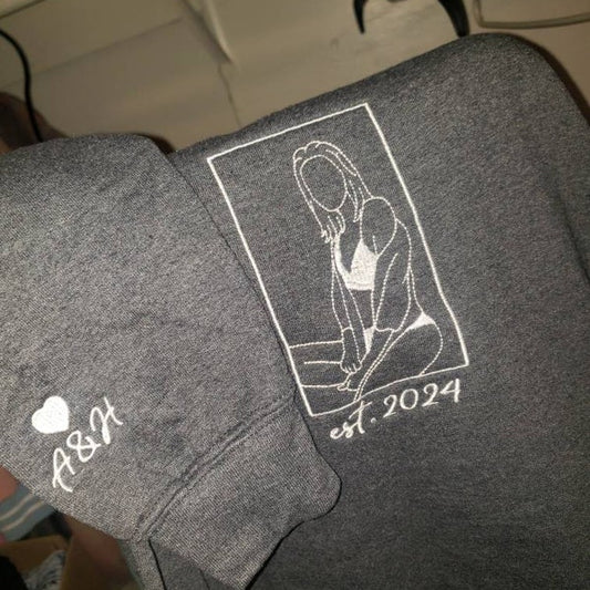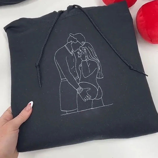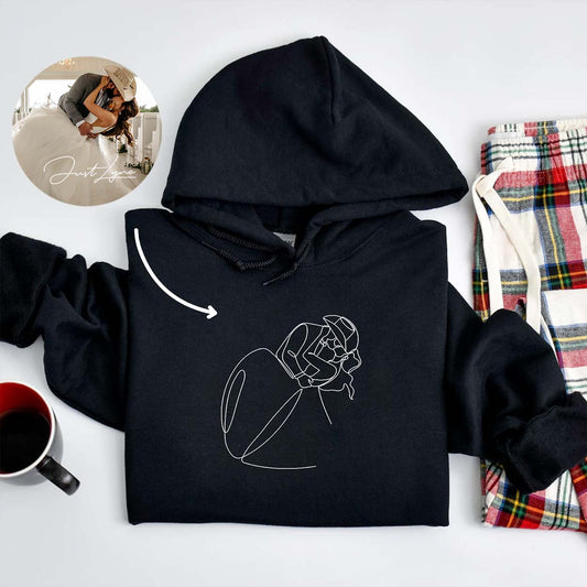 Personalisierter bestickter Spicy Hoodie mit Line Art Foto-Sweatshirt, Valentinstagsgeschenk für Sie/Ihn