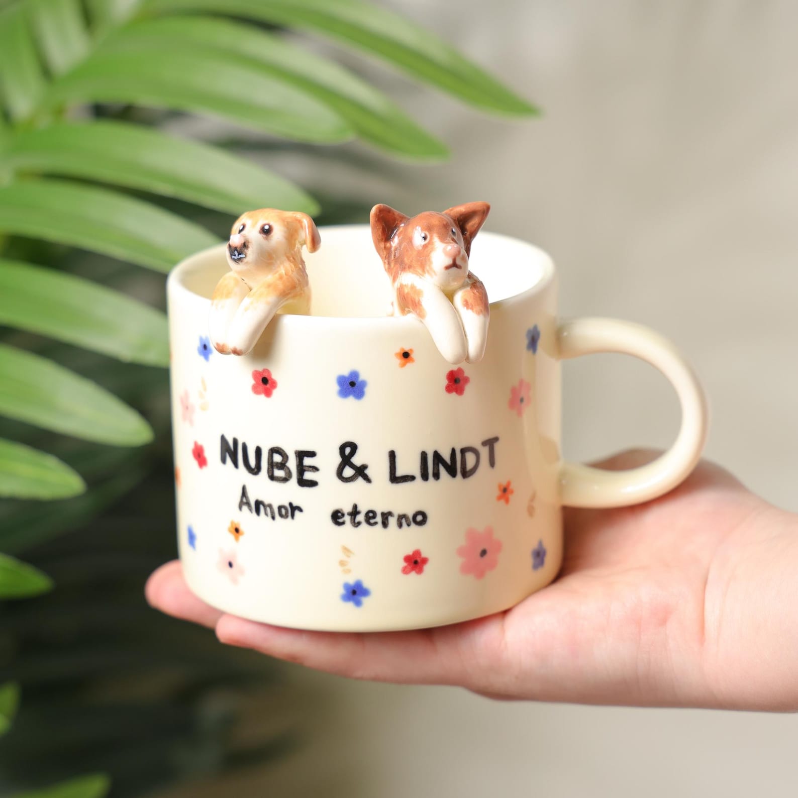 Personalisierte Tasse mit Haustierfigur – Individuelle handgefertigte Keramiktasse mit Katze und Hund