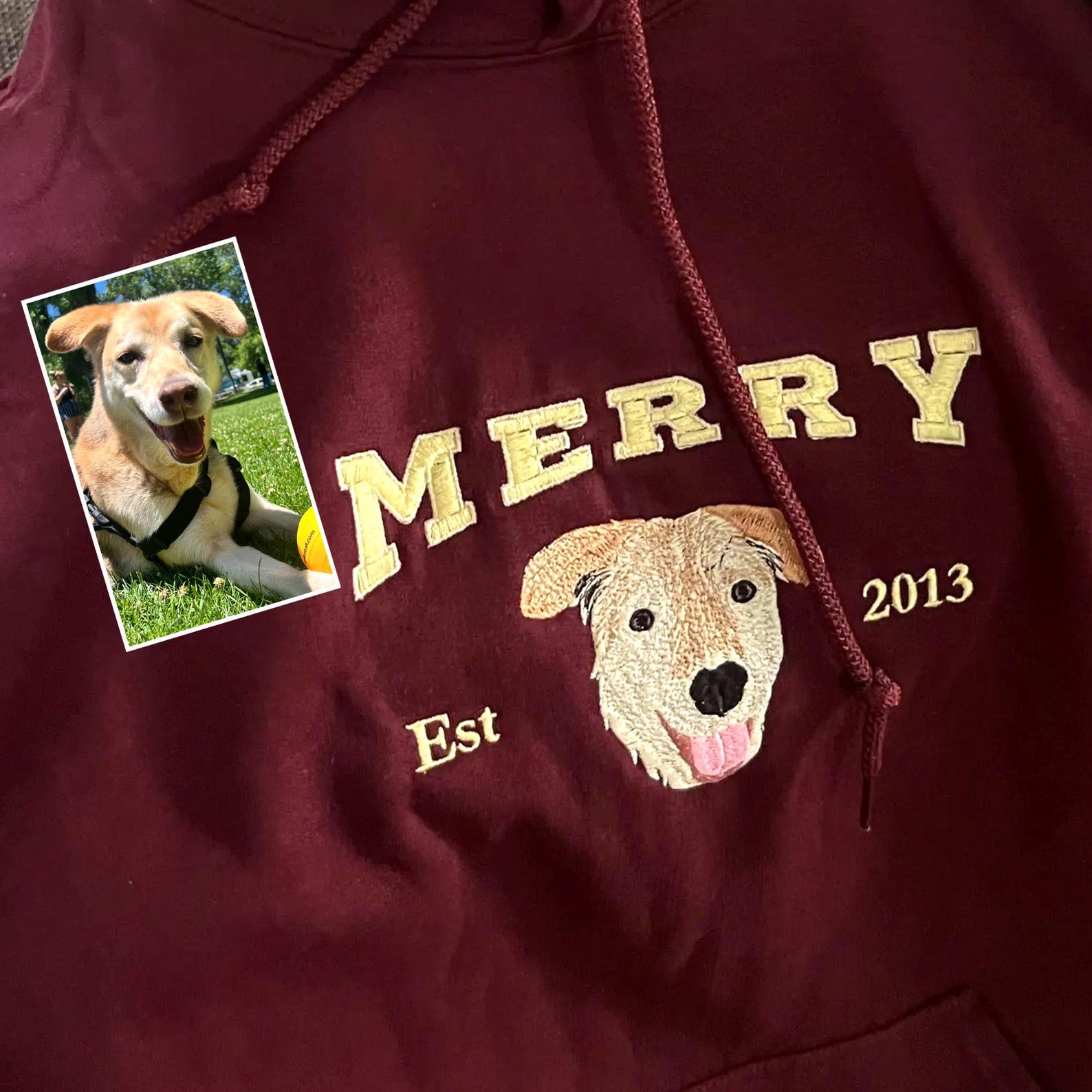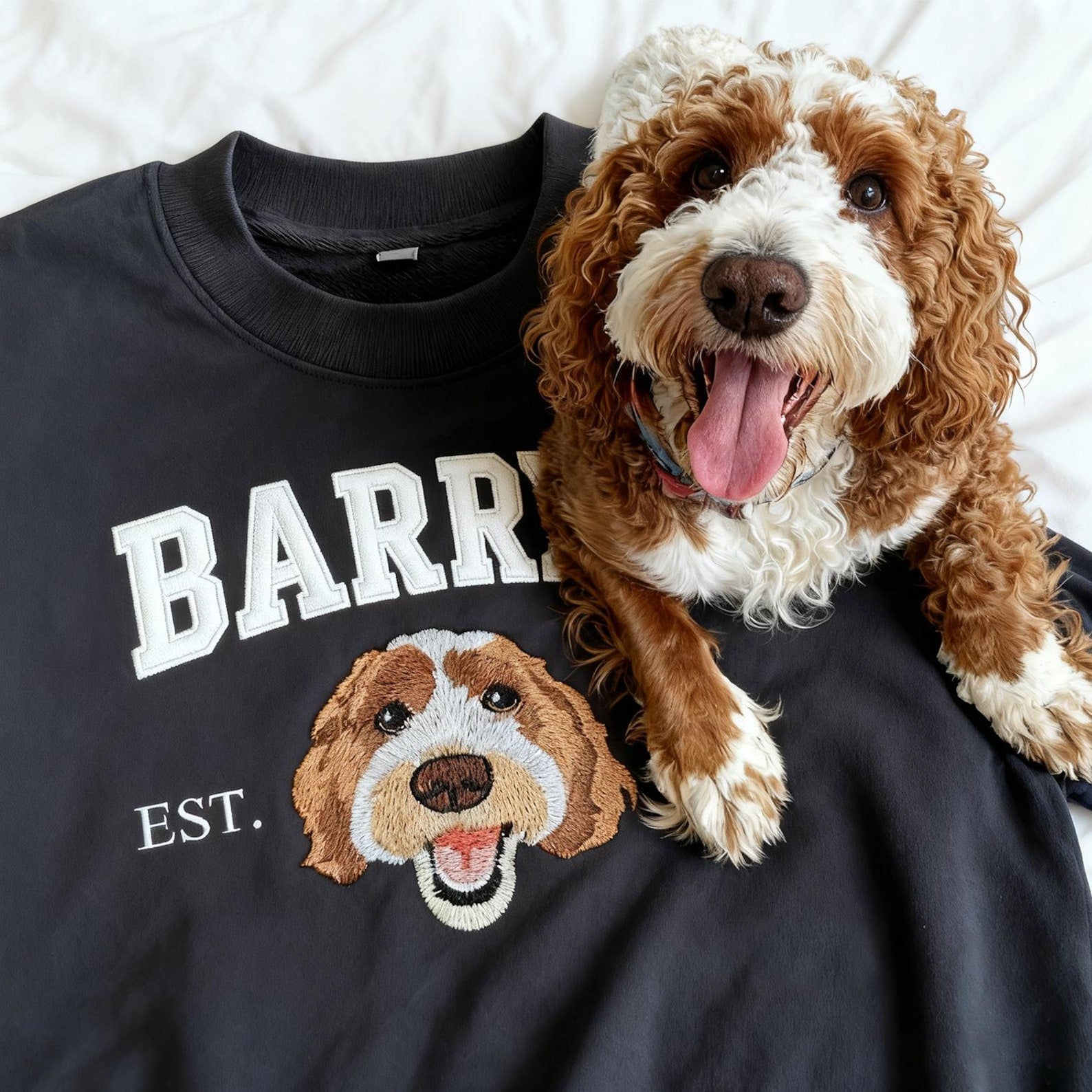 Individuell bestickte Haustierporträts auf Bekleidung und Accessoires