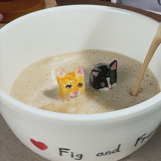 Personalisierte Tasse mit Haustierfigur – Individuelle handgefertigte Keramiktasse mit Katze und Hund