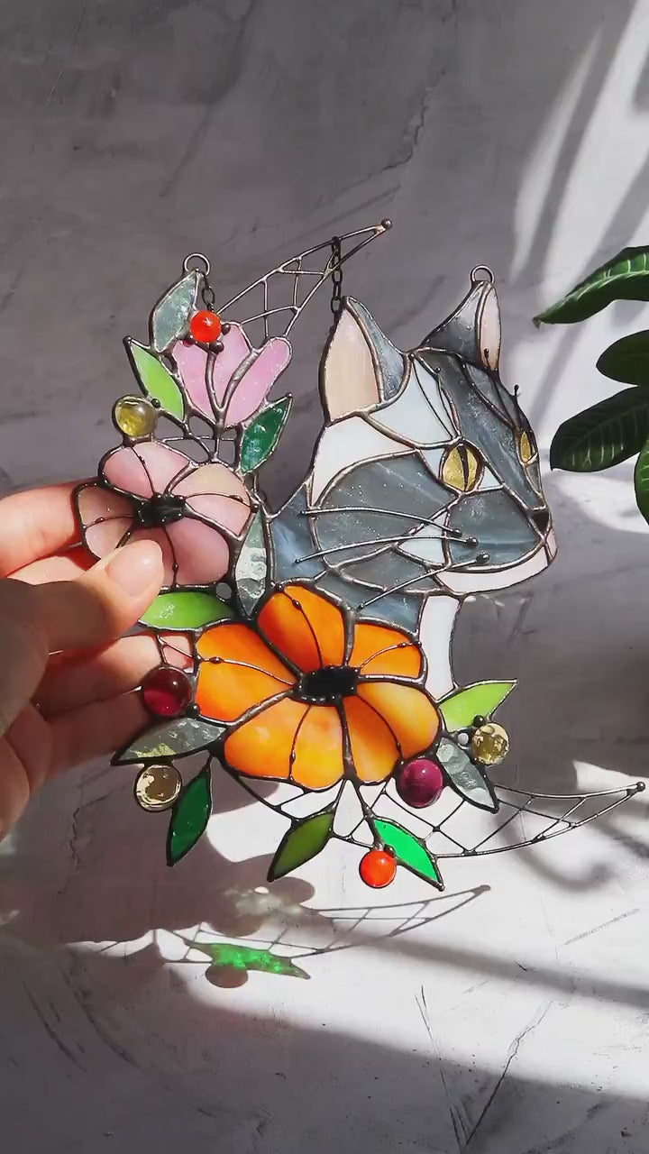 Honor your furry friend with our Custom Pet Portrait Stained Glass Suncatcher 🐶🐱. Handcrafted with vibrant stained glass, this personalized suncatcher captures the spirit and charm of your beloved pet in a truly unique way ✨.