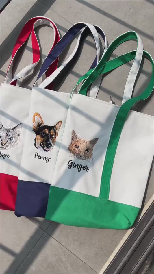 Sac fourre-tout personnalisé avec portrait d'animal brodé – Sac en velours côtelé personnalisé pour les amoureux des chiens et des chats, cadeau de Noël pour maman d'animaux