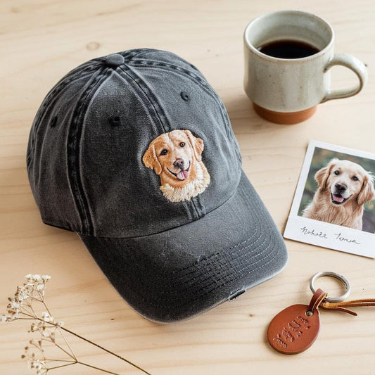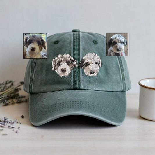 Casquette de baseball vintage brodĂ©e avec portrait d'animal â Cadeau personnalisĂ© pour les amoureux des chiens et des chats