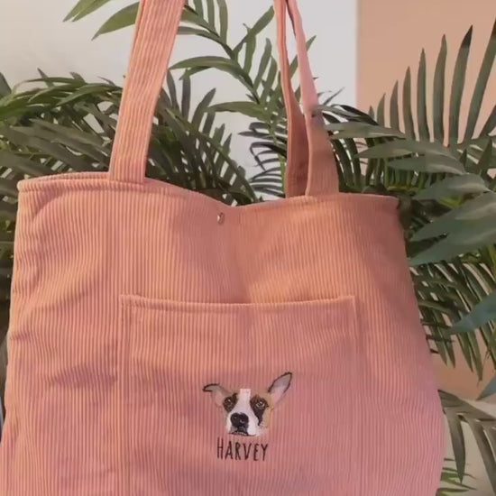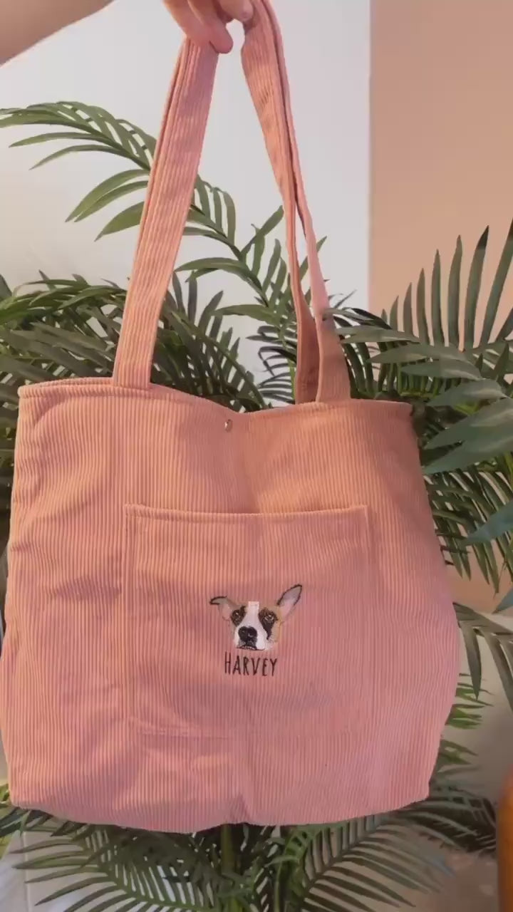 Sac fourre-tout en velours côtelé brodé personnalisé pour animaux de compagnie – Cadeau unique pour les amoureux des chiens ou des chats