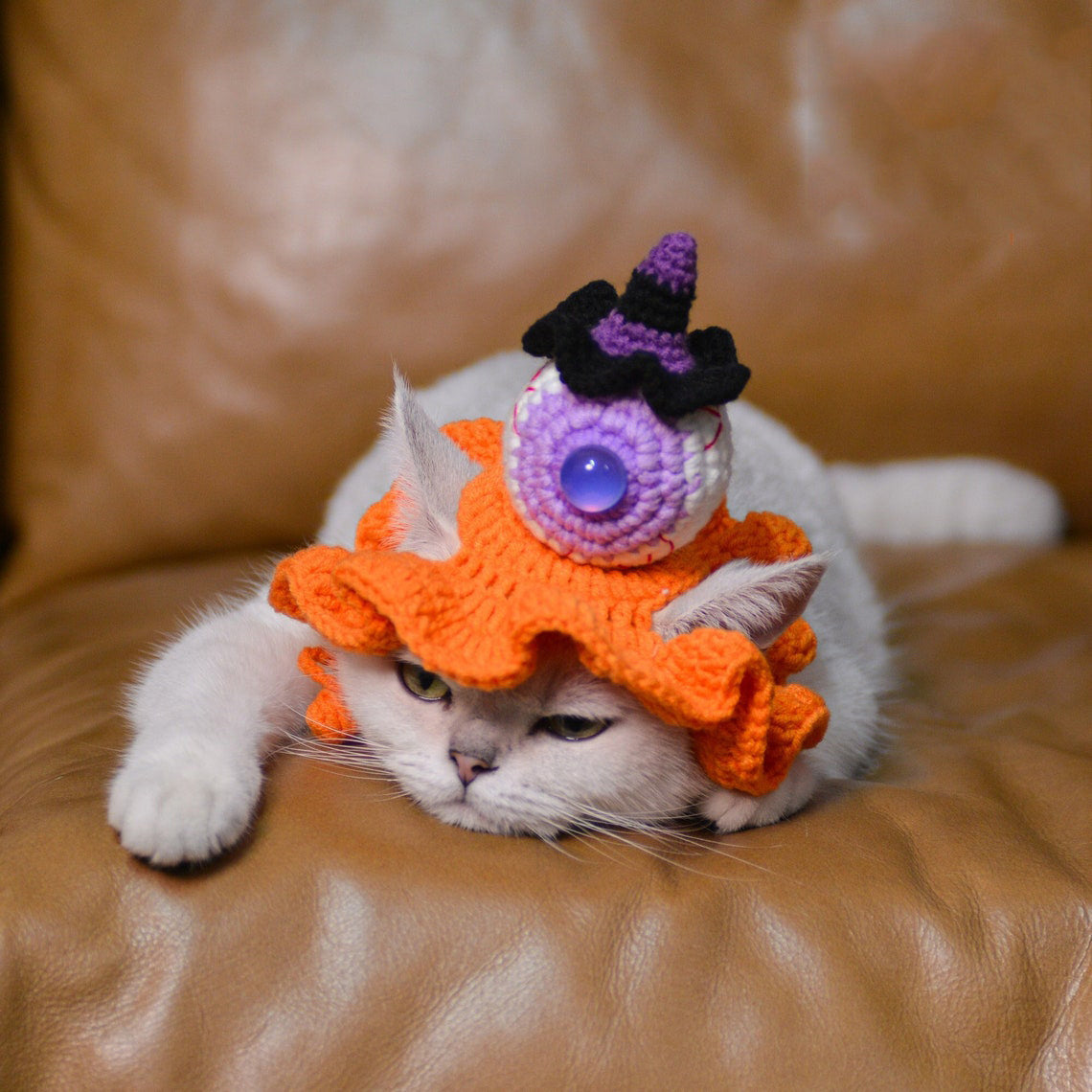 Crochet Eyeball & Mini Witch Pet Hat Halloween Pet Costume Gift for Pet Lovers