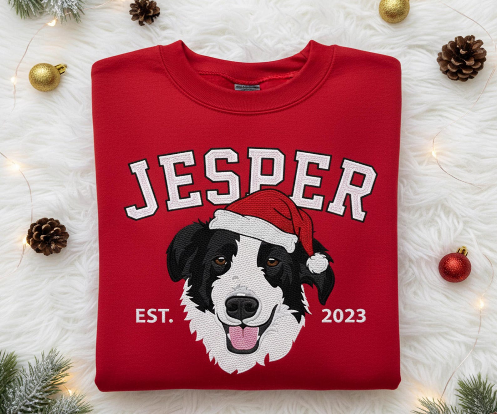 Our Custom Embroidered Pet Dog Face Christmas Sweatshirt features your petās adorable face wearing a festive Santa hat ā lovingly stitched for a personal touch that lasts. Made from soft, cozy cotton blend fabric, this sweatshirt keeps you warm and merry all season long.