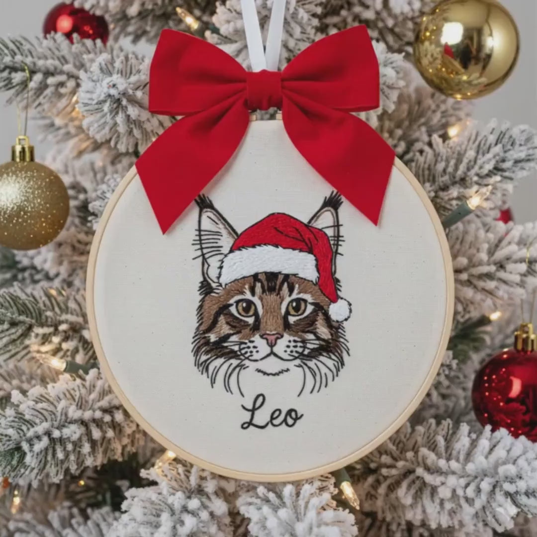 Honor your beloved pet with a custom embroidered ornament that captures their unique charm. Each piece is carefully handcrafted and personalized with your pet’s portrait, making it a timeless keepsake for your Christmas tree or home décor.