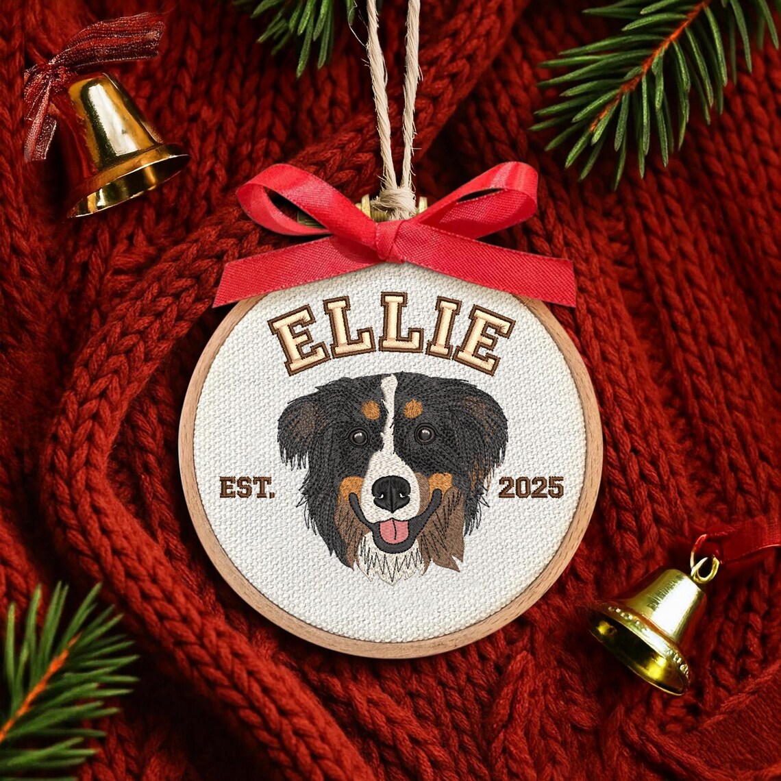 Custom Embroidered Pet Face Portrait Christmas Ornament Keepsake Gift For Dog Cat Owners Pet Lovers