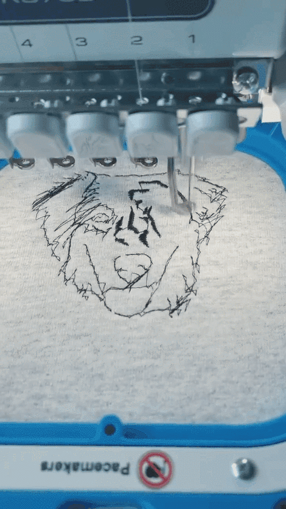 We start embroidering on clothes with computerized embroidery machines, which are very advanced and professional, that can achieve high speed, high efficiency, and also delicate embroidery.