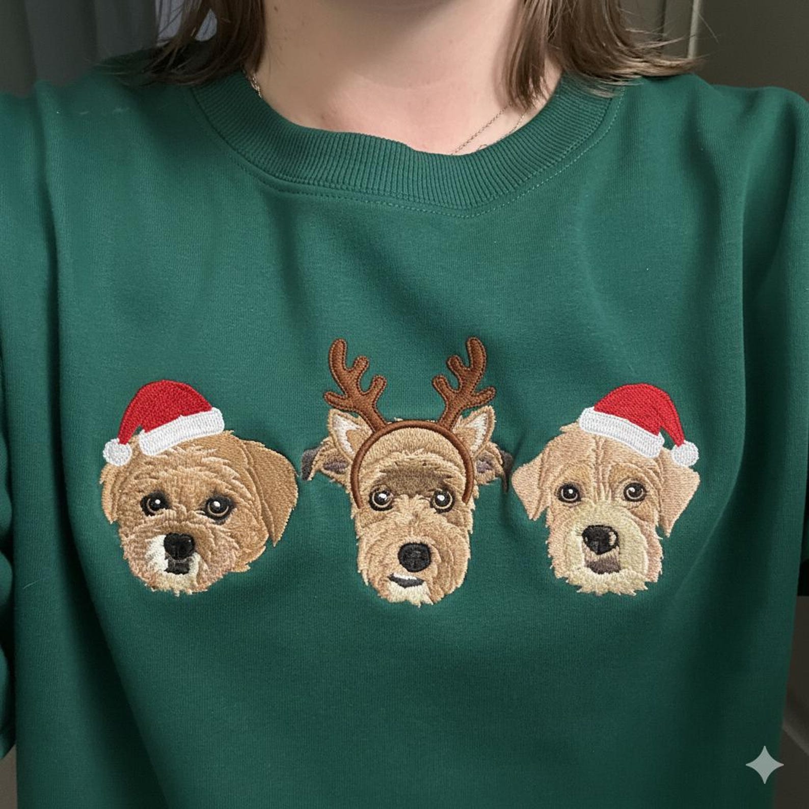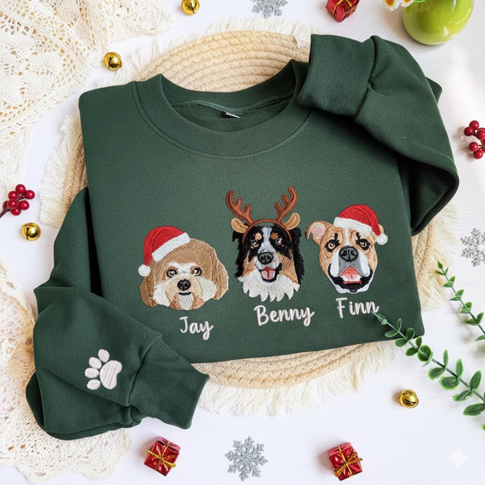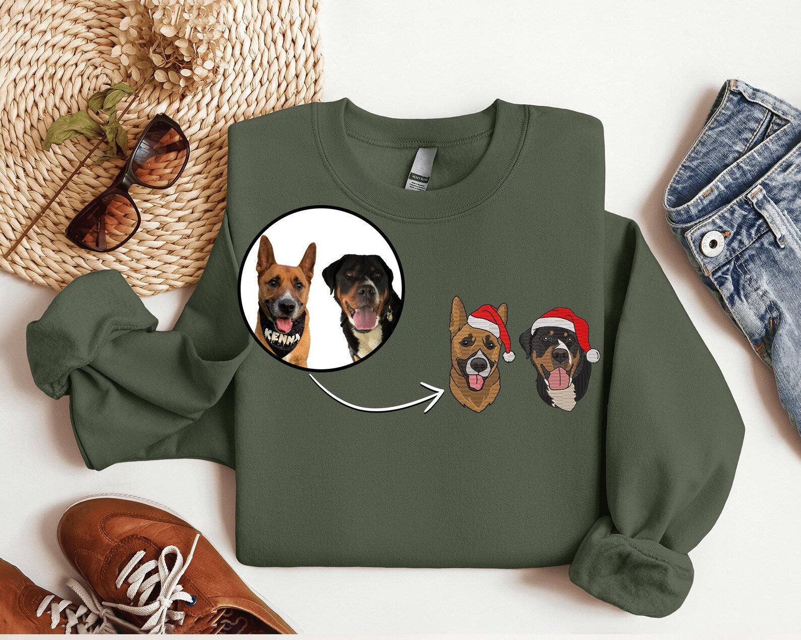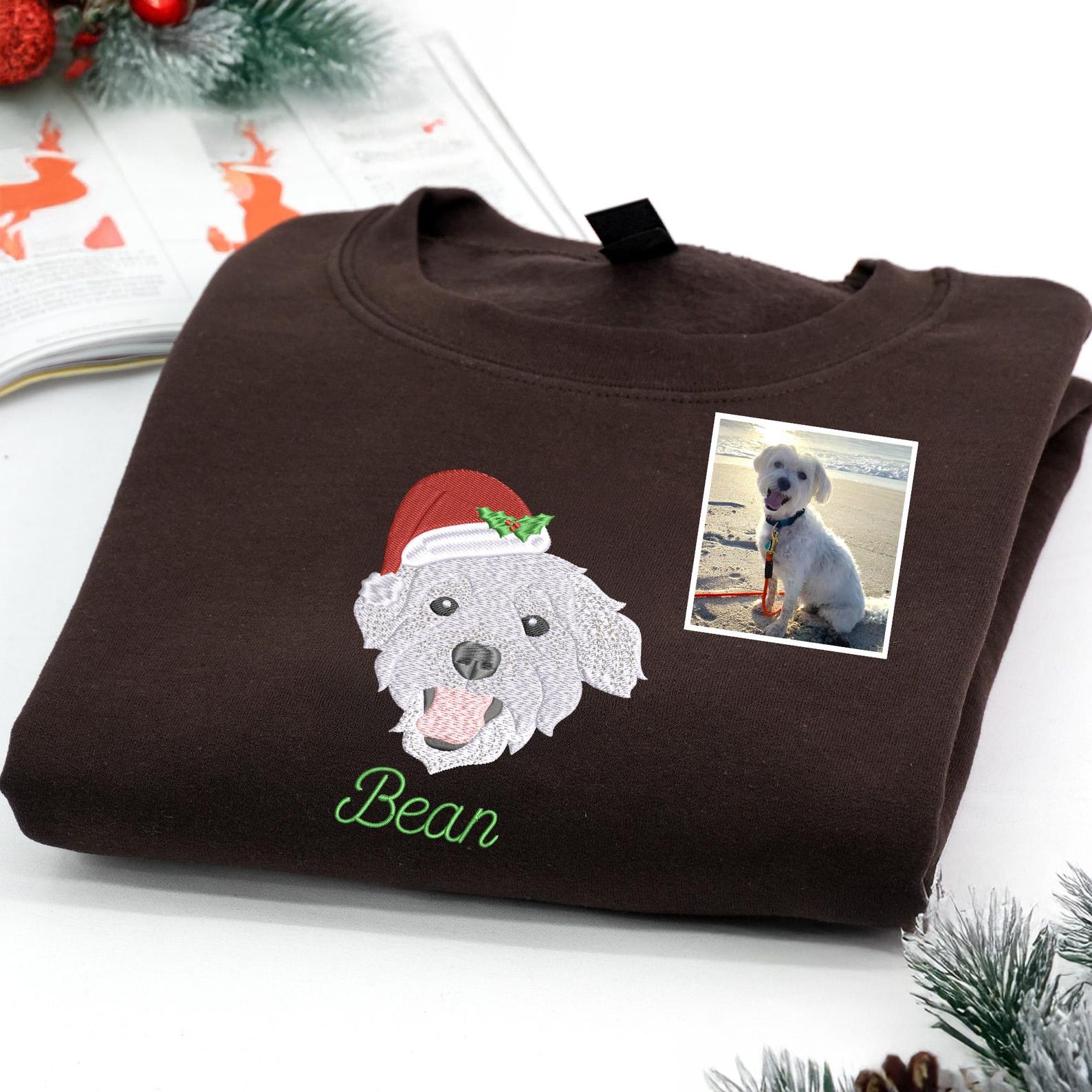 Custom Embroidered Pet Portrait Christmas Sweatshirt Hoodie Christmas Gift for Dog & Cat Lovers