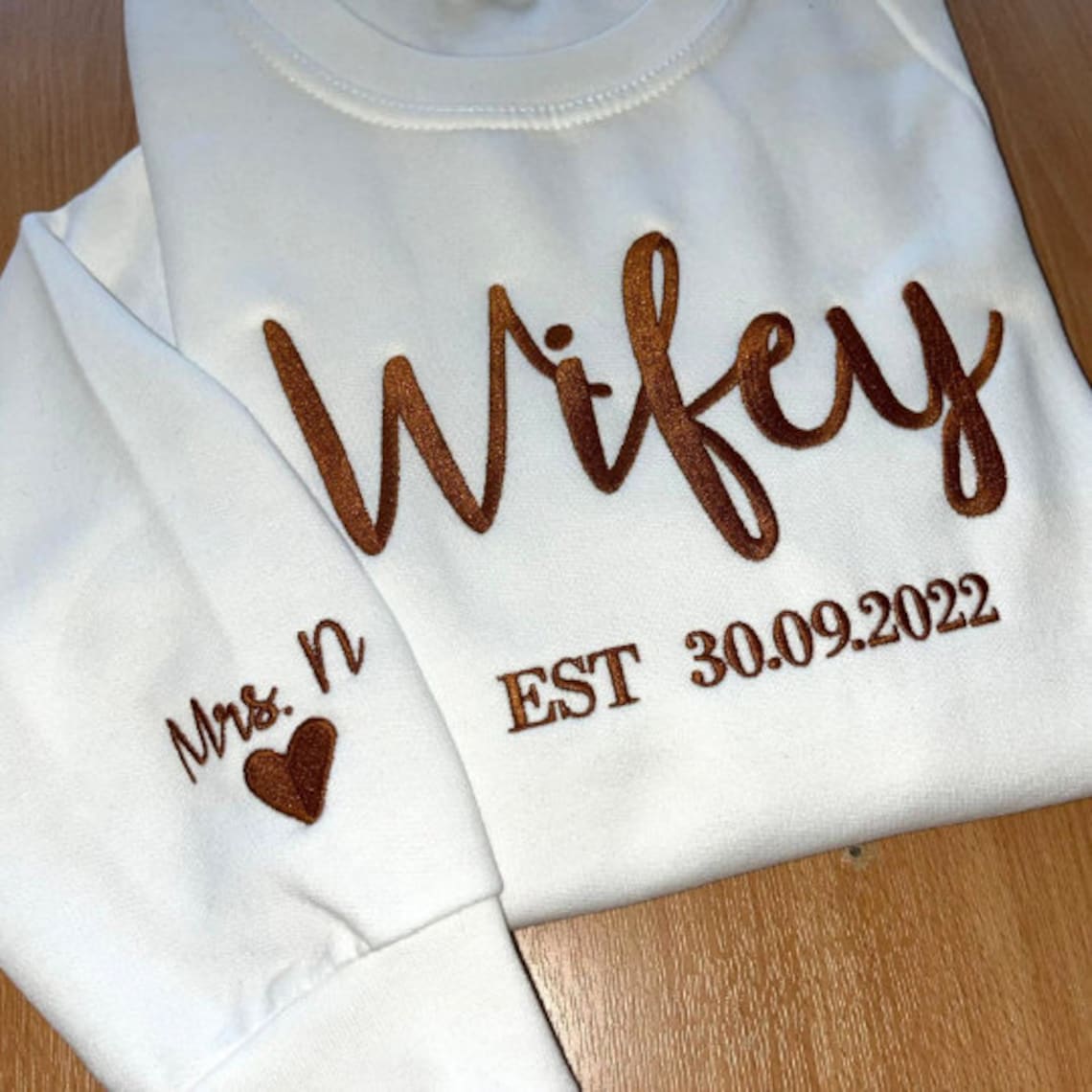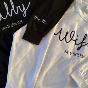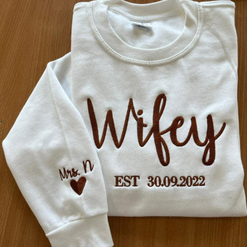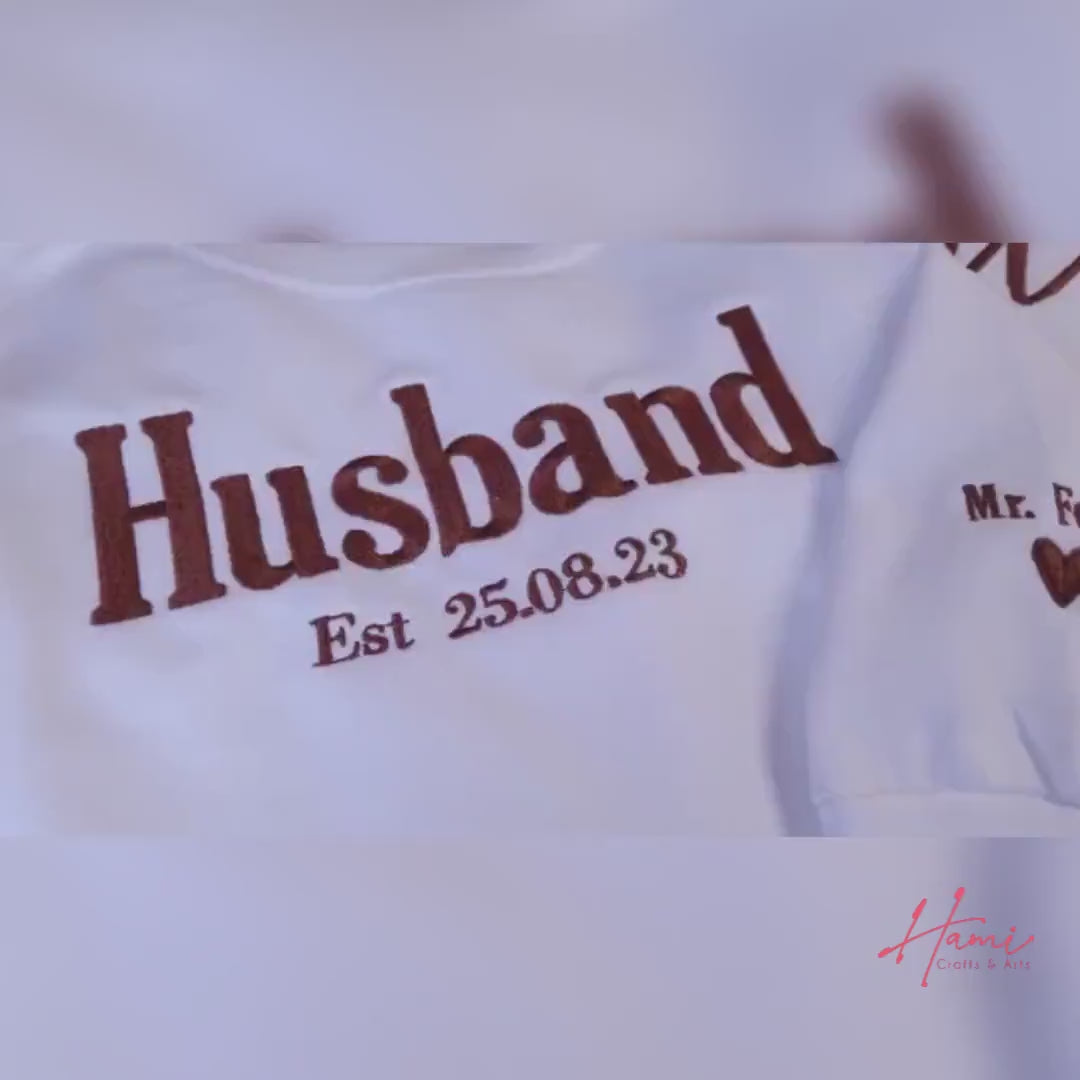 Custom Embroidered Wifey Hubby Year Matching Couple Sweatshirt Valentine Gift
