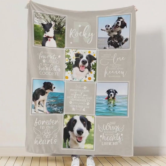 Honor the memory of your beloved furry friend with this Personalized Dog Memorial Photo Blanket — a heartfelt keepsake that brings comfort, warmth, and love.