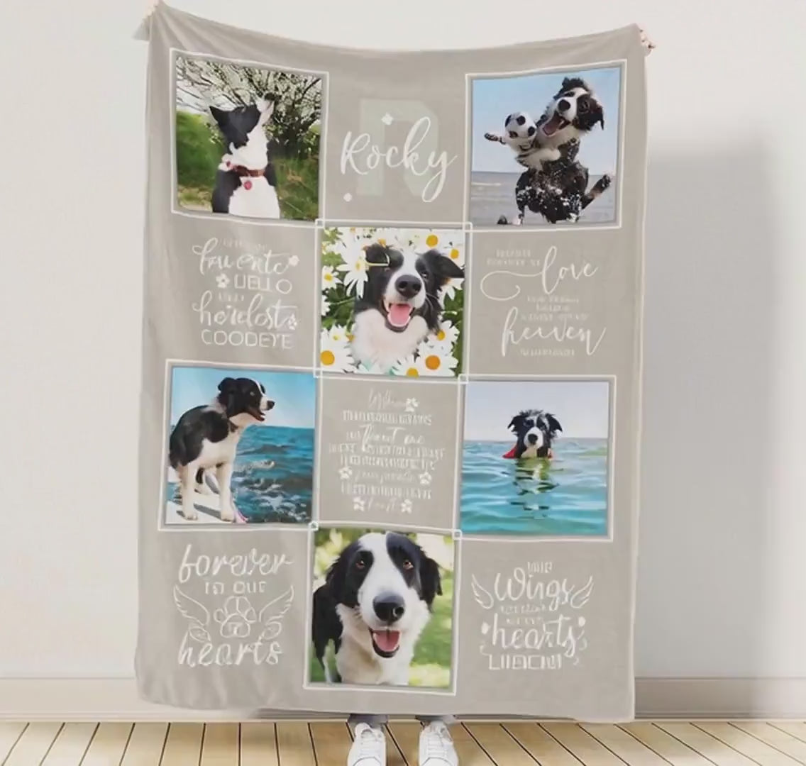 Whether given as a pet loss sympathy gift or a Christmas gift for dog lovers, this cozy blanket offers comfort and remembrance during difficult times.