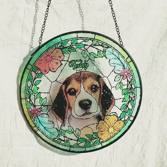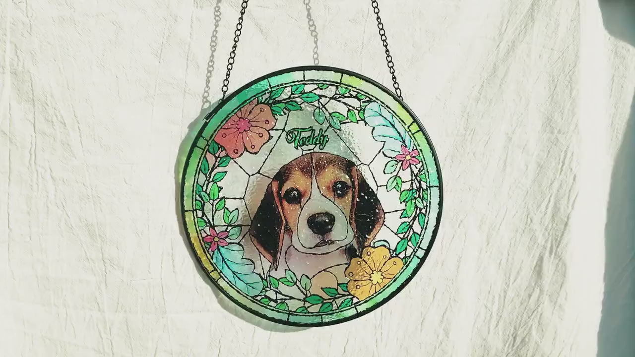 Custom Pet Portrait Stained Glass Suncatcher – Dog or Cat Memorial Gift