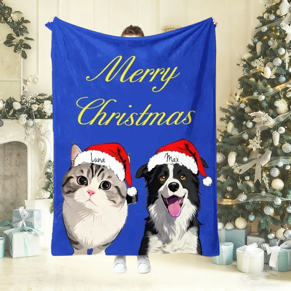Wrap yourself in holiday warmth and pet love! This custom dog & cat photo blanket is designed to capture your furry friendās festive spirit. Simply upload your petās picture ā weāll turn it into a unique Christmas portrait featuring a charming Santa hat.