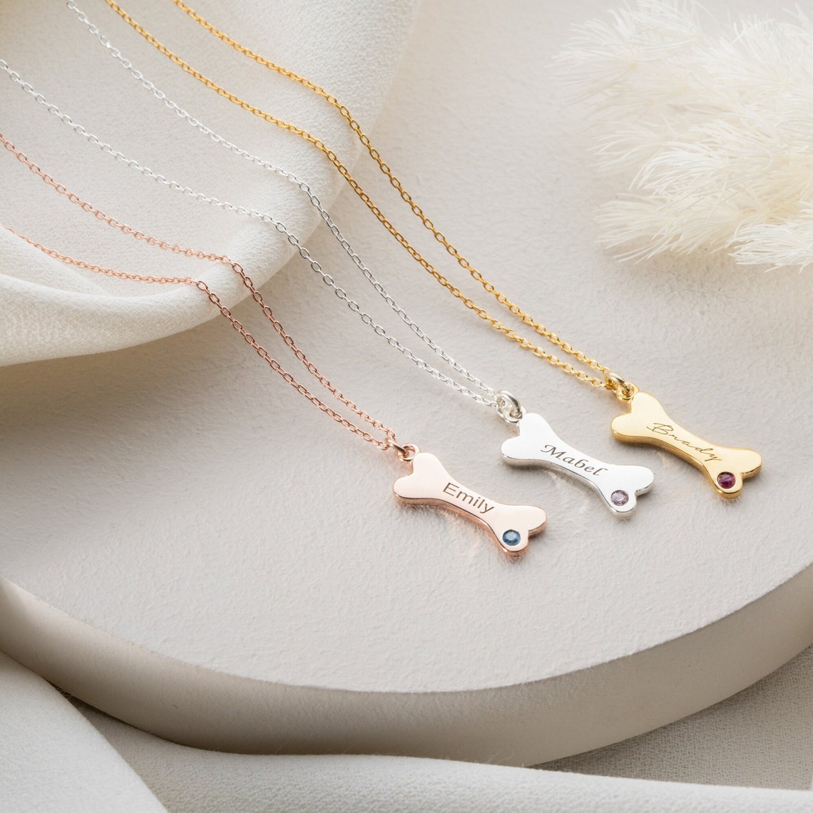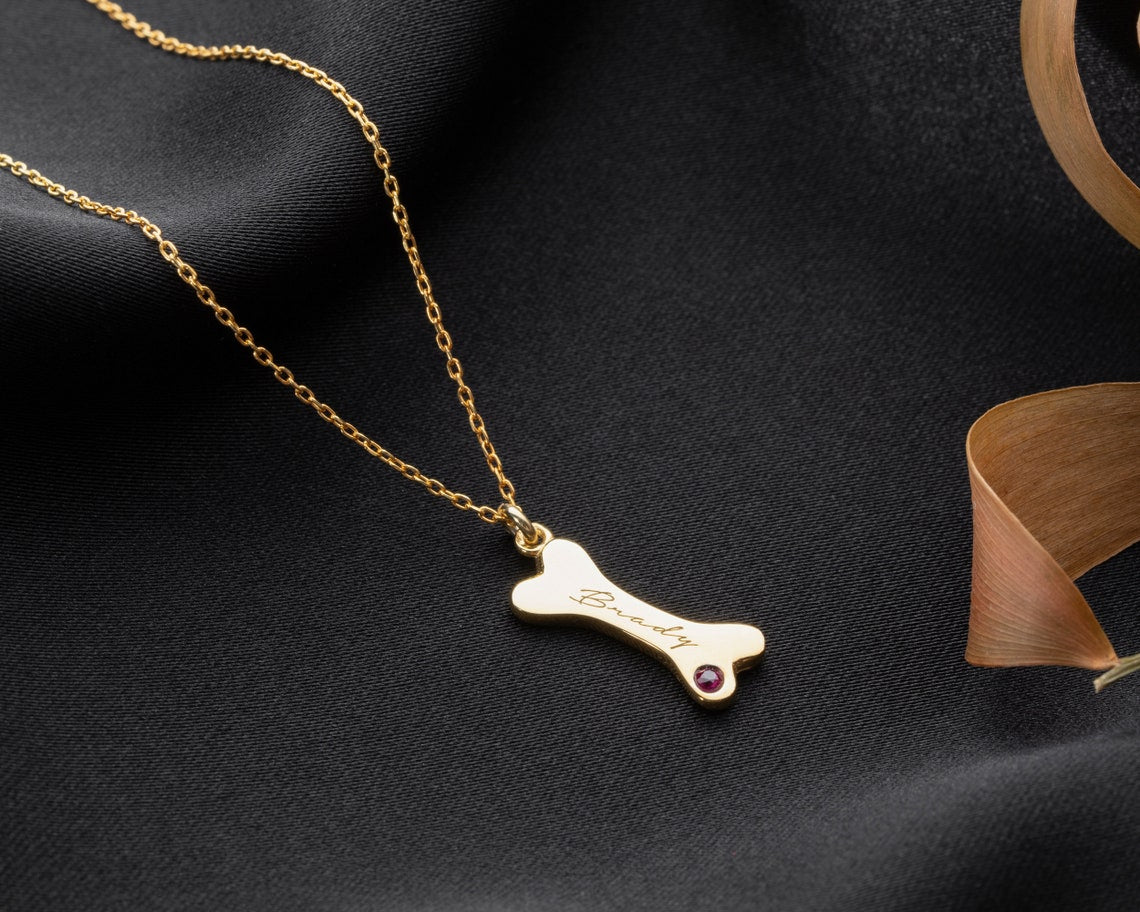 Celebrate the unconditional love of your furry friend with our Personalized Dog Bone Shaped Necklace. Designed with a charming bone-shaped pendant, this custom necklace can be engraved with your pet’s name and paired with a sparkling birthstone, creating a one-of-a-kind keepsake for every dog and cat lover.