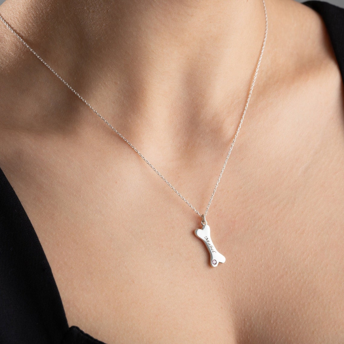 Personalized Dog Bone Shaped Necklace with Name Birthstone Unique Birthday Memorial Gift For Pet Lovers