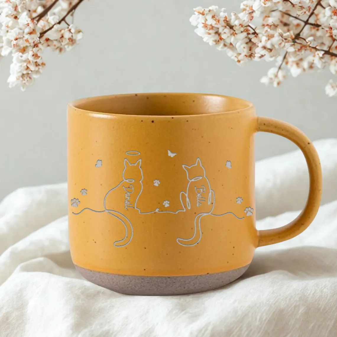 Personalized Dog & Cat Mug – Custom Pet Memorial Gift|Cat Lover & Pet Mom Coffee Pottery Mug with Line Art Design Christmas Gift