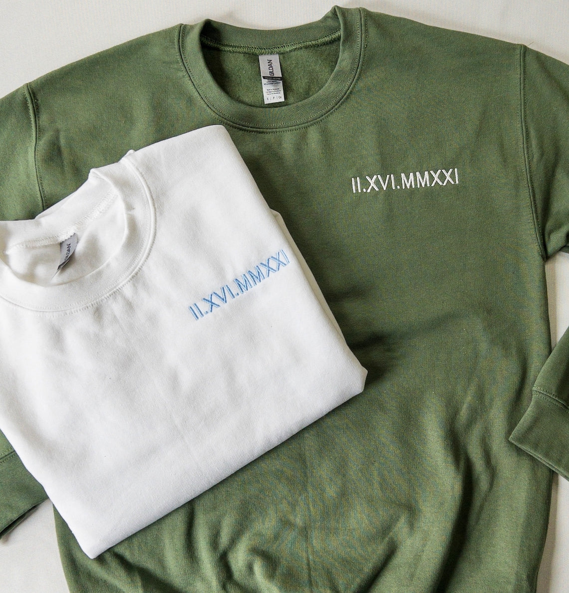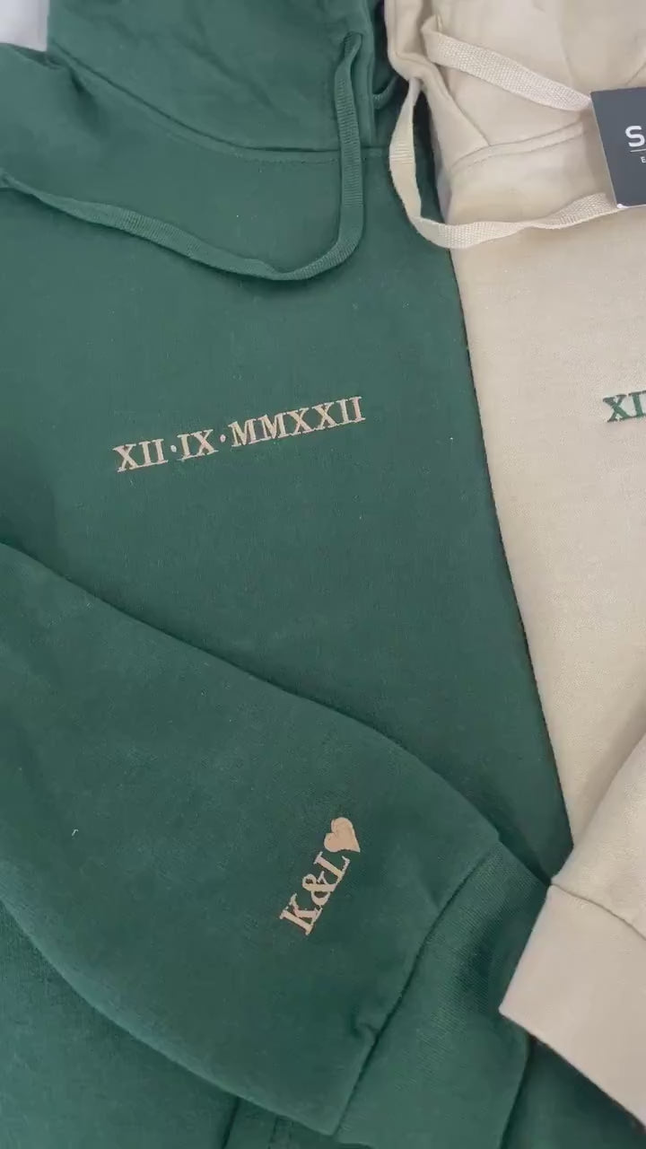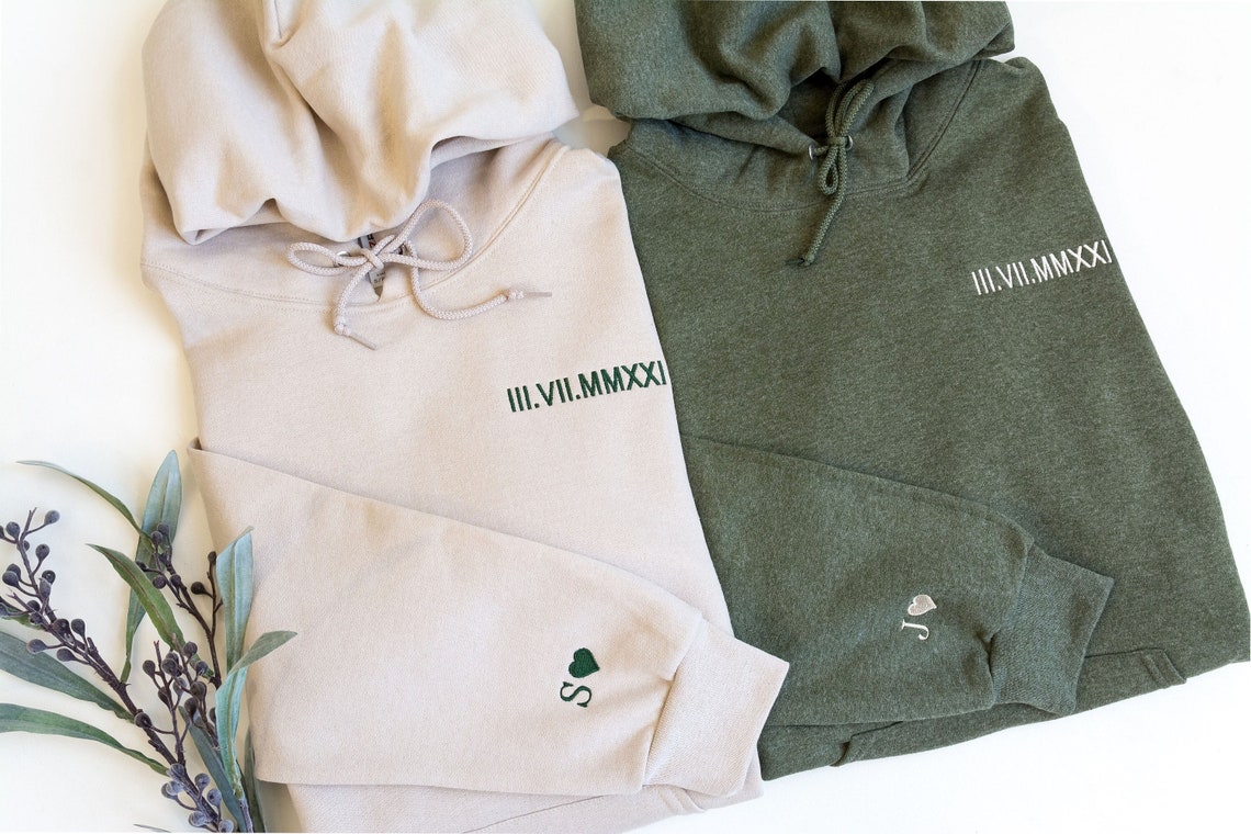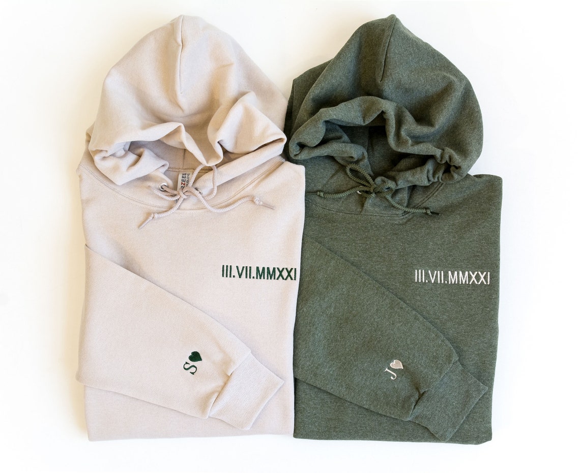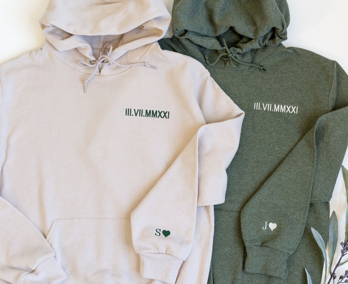 Personalized Embroidered Roman Numeral Matching Hoodie Sweatshirt Valentines Day Couple Gifts