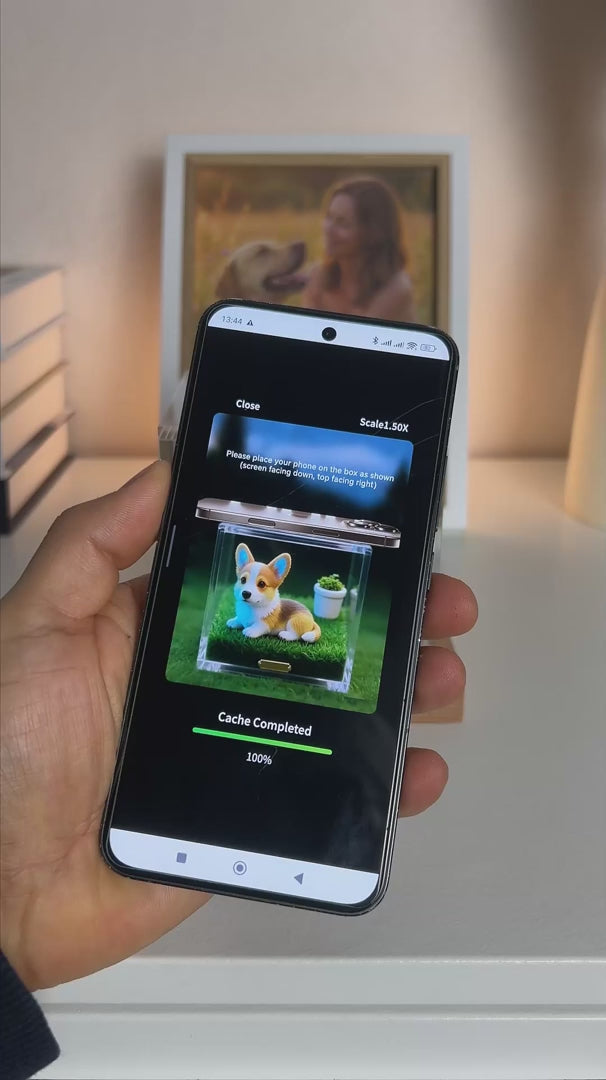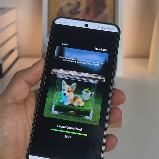 Place your phone on top of the box,activate the hologram, and watch yourpet move again in front of you. Light,movement, and real presence.