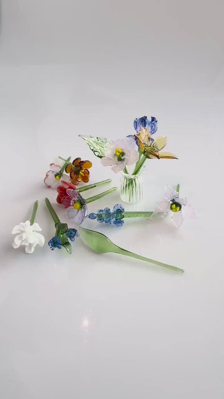 The flowers are made of glass, and the flower rods are made of wire (can be cut and bent for easier