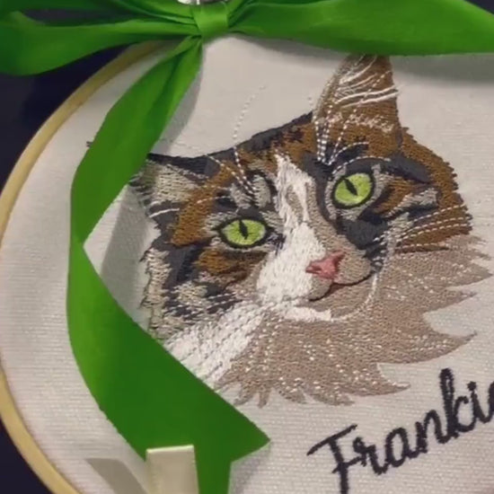 Personalized Pet Memorial Ornament – Custom Embroidered Cat Portrait Keepsake Gift for Pet Lovers