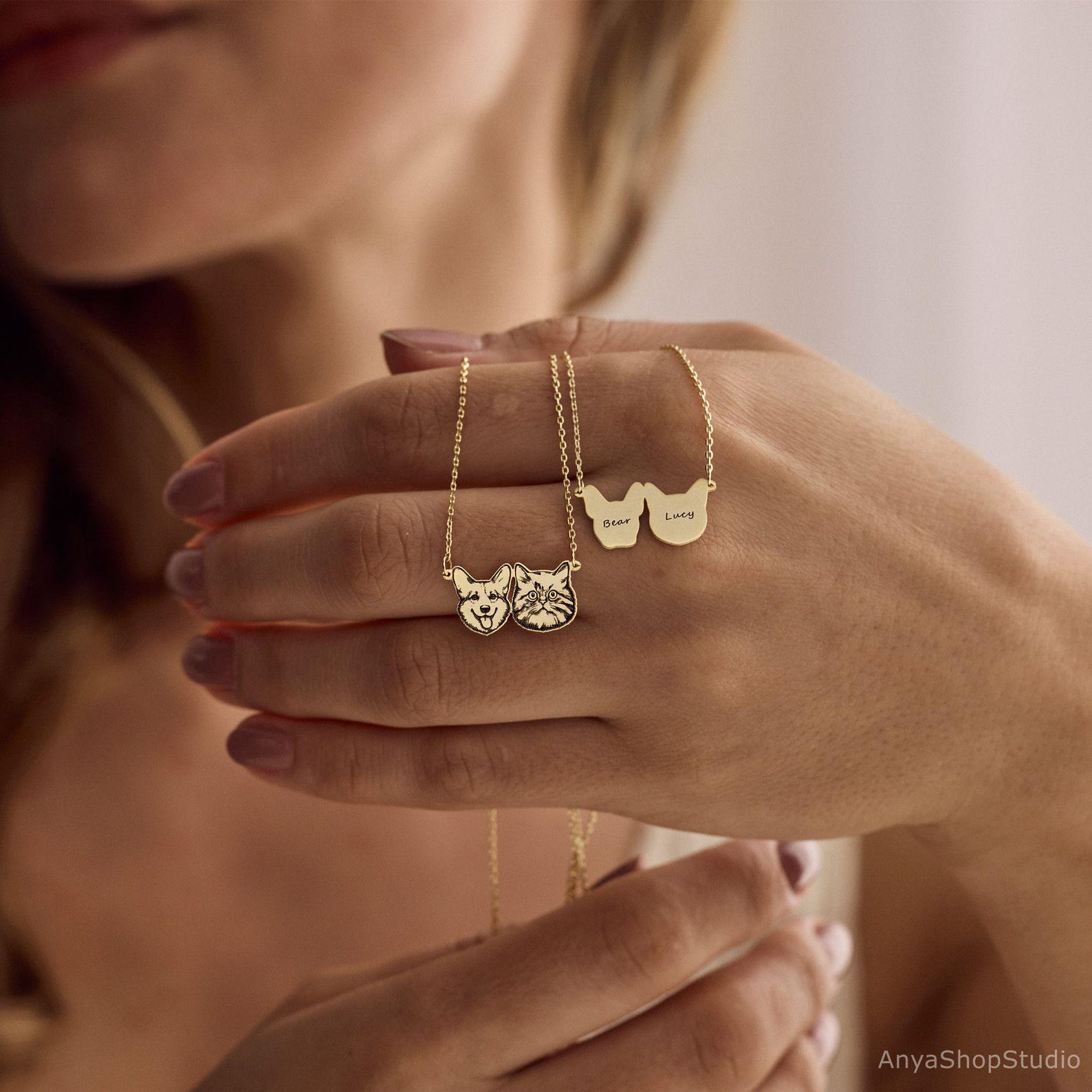 Custom Pet Portrait Necklace, Pet Memorial Jewelry, Pet Name Necklace Engraved Necklace, Dog & Cat Necklace, Women Necklace, Gift for Her