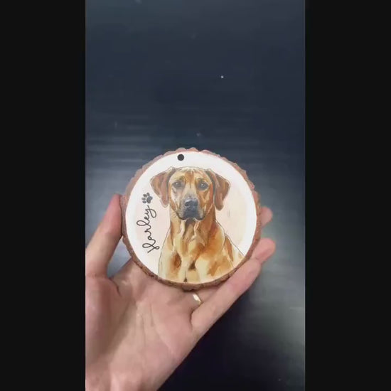Personalized Watercolor Pet Portrait Wooden Christmas Ornament Christmas Gift for Dog Cat Lovers
